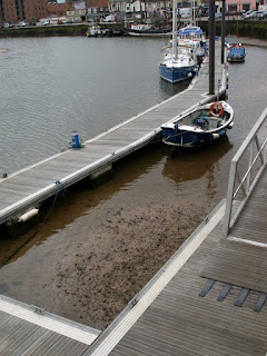 We ended up staying in Wells for four days, a very pleasant place with lots to see and do. The town itself is has quite a range of shops for a town of about 3,000, including 2 chandlers !! The tide is building towards springs at the moment, and the amount of salt marsh covering at high water is quite impressive, on the other hand, there isn't much water at all at low water. We made up a lead line to check clearance, and on 4th May we had about 6" water under us with the keel raised completely.